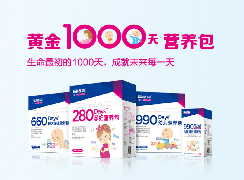 做到良好地干預(yù)兒童早期營養(yǎng),并非一件容易的事。福格森敢于擔(dān)下此任,頗耗心血,推出的黃金1000天孕嬰營養(yǎng)包,從根源上發(fā)現(xiàn)問題,規(guī)劃具體方案,在本質(zhì)上解決了兒童早期的營養(yǎng)補(bǔ)給問題。據(jù)悉,營養(yǎng)包重視兒童早期發(fā)展,根據(jù)研究表明的生命最初早期1000天的重要性,把早期營養(yǎng)補(bǔ)給的時(shí)間范圍界定為胎兒0-2歲。這一關(guān)鍵時(shí)期,明確劃分了三階段,針對不同階段有280days孕婦營養(yǎng)包、660days較大嬰兒營養(yǎng)包、990days幼兒營養(yǎng)包,其營養(yǎng)包的配方、配比也因階段性營養(yǎng)需求而大不一樣,更精準(zhǔn)、科學(xué)、全面,定義了全新的營養(yǎng)補(bǔ)給概念。
